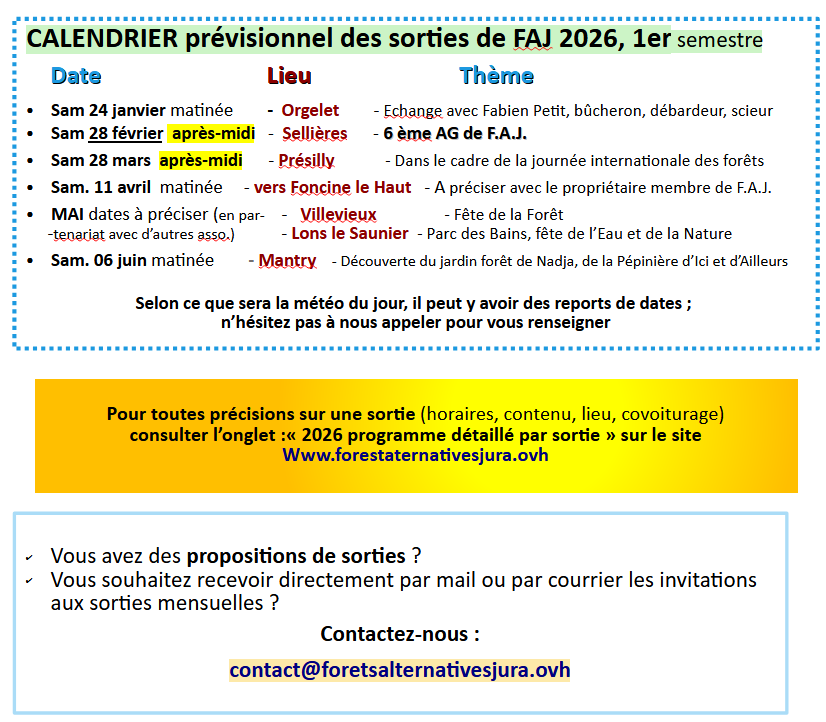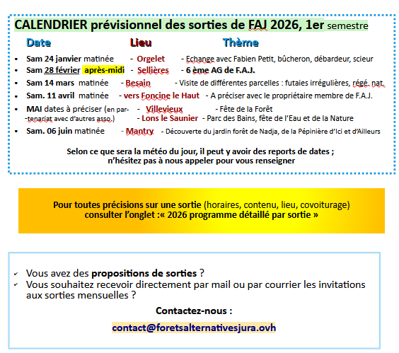 • 2026 Programme détaillé par sorties